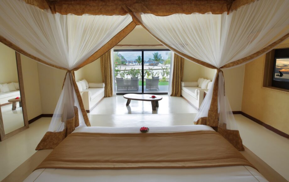 I Zanzibar var rommet vårt satt opp med champagne og fruktfat som var så spesielt.
