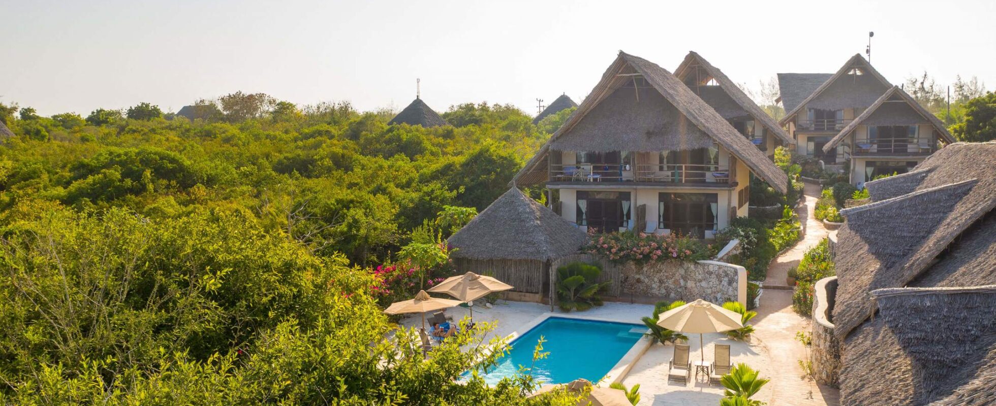 Sunshine Bay Zanzibar ligger på nordøstkysten av Zanzibar, i et tropisk paradis på den hvite sandstranden Matemwe. Hotellet har 16 bungalower med fantastisk havutsikt og omgitt av tropisk hage. Hver bungalow er luftig, med både flere takvifter og store vinduer som slipper inn havbrisen. Forfriskninger serveres ved de tre supre bassengene og den uberørte stranden byr på fredelige spaserturer. Når du er sulten, er det ingen grunn til å fortvile: restauranten har mange spennende og deilige retter å velge mellom. Dette er med andre ord et idyllisk sted å lade batteriene. Det er til og med et spa som tilbyr avslappende massasjer og en energigivende nellikskrubb unik til Zanzibar!