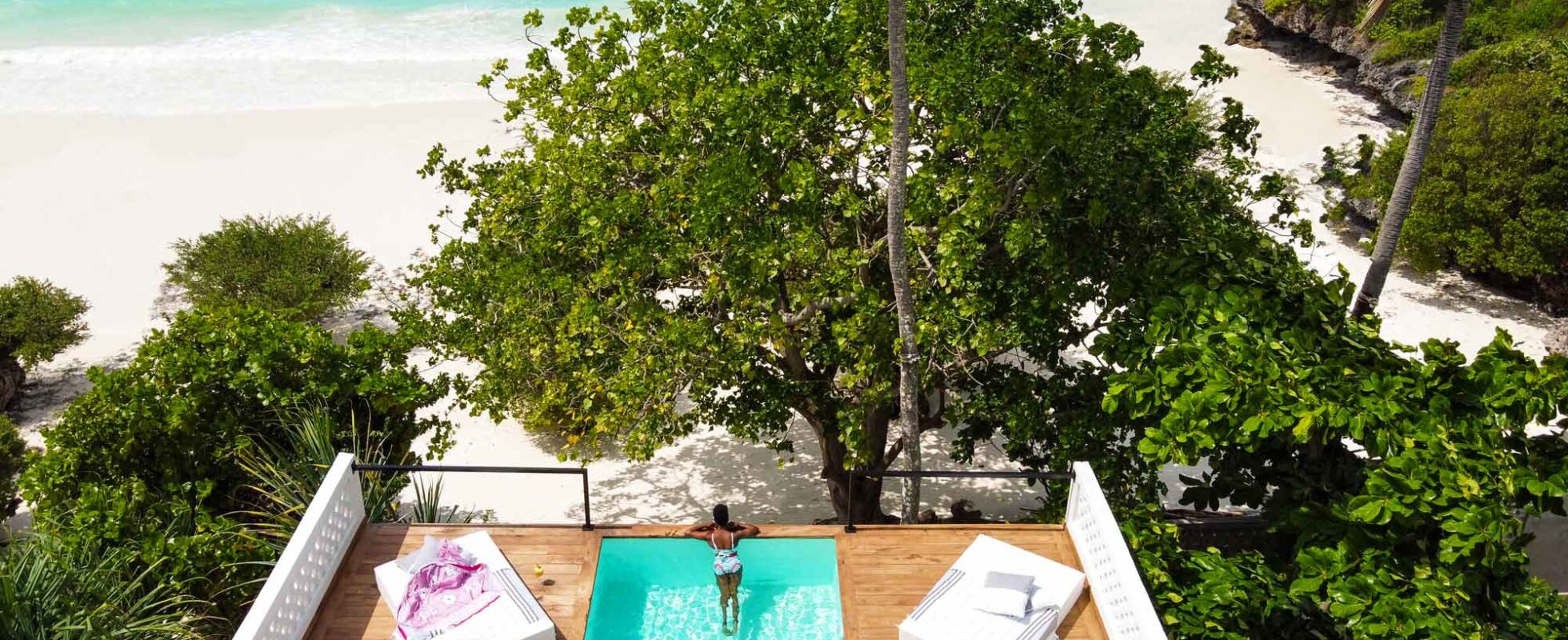 Upendo Beach ligger i Michamvi på østkysten av Zanzibar, som er en av øyens vakreste og mest tilbaketrukne strender. Boutiquehotellet har to villaer til to (kun voksne) gjester og en familievilla med tre suiter og seks soverom som kan leies separat. De mindre villaene har sitt eget basseng på taket og en egen terrasse med sjøutsikt, samt privat strandområde. Interiøret er lyst og vakkert, med en hengestol, flere store sofaer og dagsenger for en romantisk følelse. Den større villaen er minst like vakker, med et stort basseng, sofaer spredd utover huset og terrassene og en trebalkong med havutsikt som strekker seg rundt huset. Begge villaene har egen butler som tar seg av gjesters behov. Ved havet ligger også den berømte Rock Restaurant som har en variert meny og serverer deilige retter gjennom hele dagen.